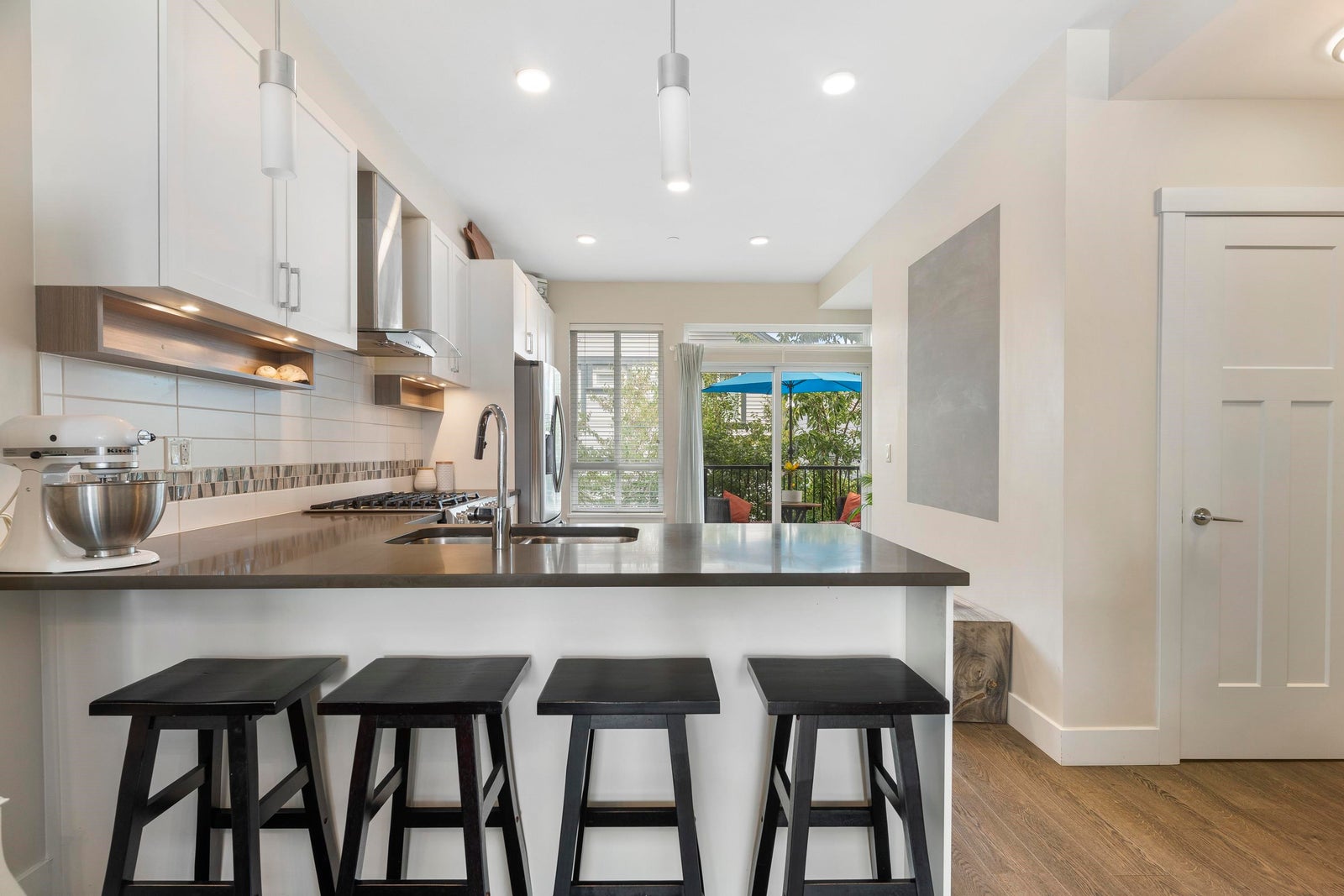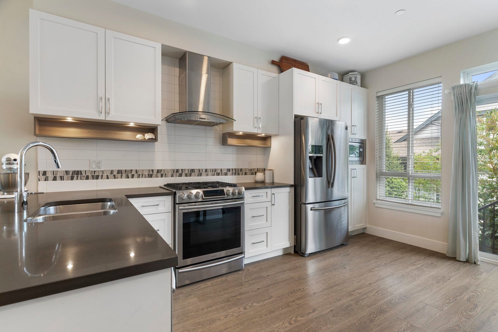 Rare and more affordable than a condo! Bright 1,262 Sq. Ft. 2 BED 3 BATH END UNIT! Extra large windows and 9' ceilings with stylish kitchen including quartz counters, premium cabinets, SS appliances, gas range - open to dining and living areas. Enjoy mountain views from the master bedroom, a private deck with stairs leading to a fenced yard. Perfect for your fur-babies. Large storage closets and two-car tandem garage located in a sought-after Master Planned Community just 5 mins for BC Ferries and Tsawwassen Mills. 25 minutes to Vancouver and minutes to the boardwalk, Point Roberts, golfing, and biking on miles of oceanfront trails