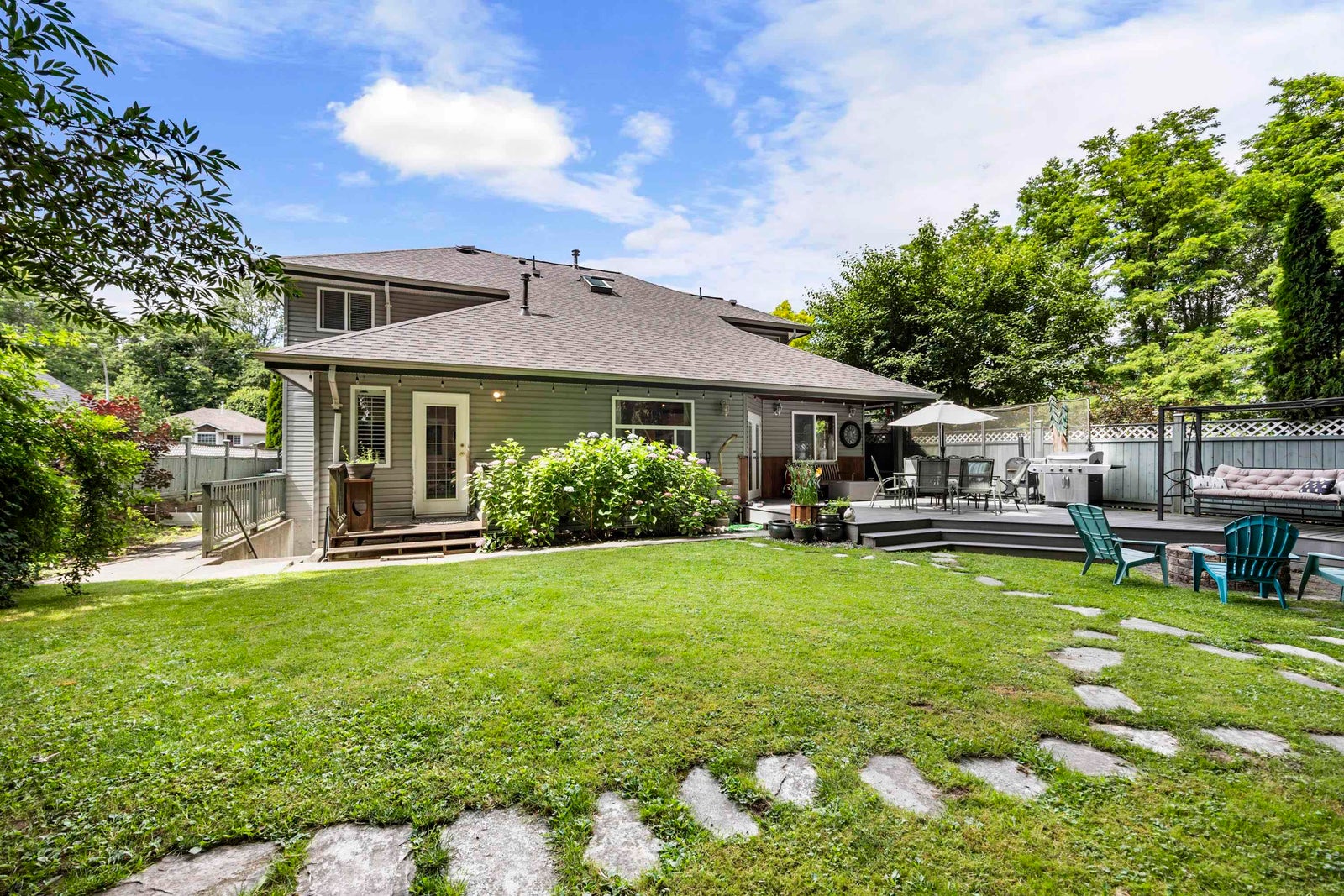 Nestled on a quiet no-thru street in Fraser Heights, backing onto the forest of Barnston park for total privacy. This traditional family home offers formal living/dining rms for entertaining & an open kitchen/eating/family rm for everyday living, plus a main floor office w/yard access. Updates inc. a stunning white kitchen w/gold hardware, SS appliances (incl. gas range) & quartz counters. All baths feature new vanities & flooring. 4 beds up incl spacious primary w/walk-in closet & large ensuite w/jetted soaker tub. Finished basement easily suited w/sep. entry, rec room, bar sink, 1 bed+den & bath w/clawfoot tub. Other features: Vaulted ceilings, 4 fire places, plantation shutters, HW on demand, huge 1038 sqft garage, hot tub & 2yr old roof! Amazing value for this beautiful property